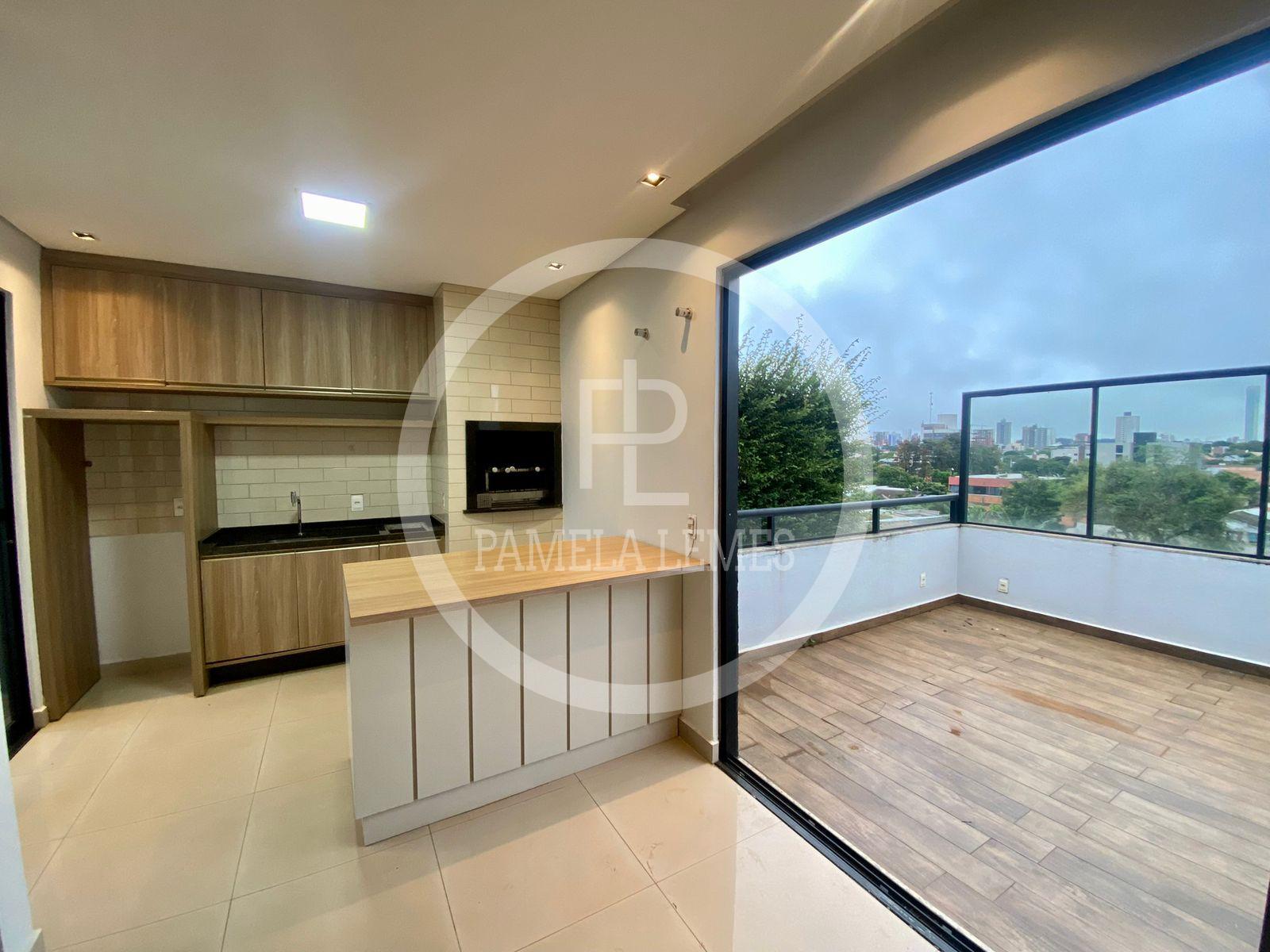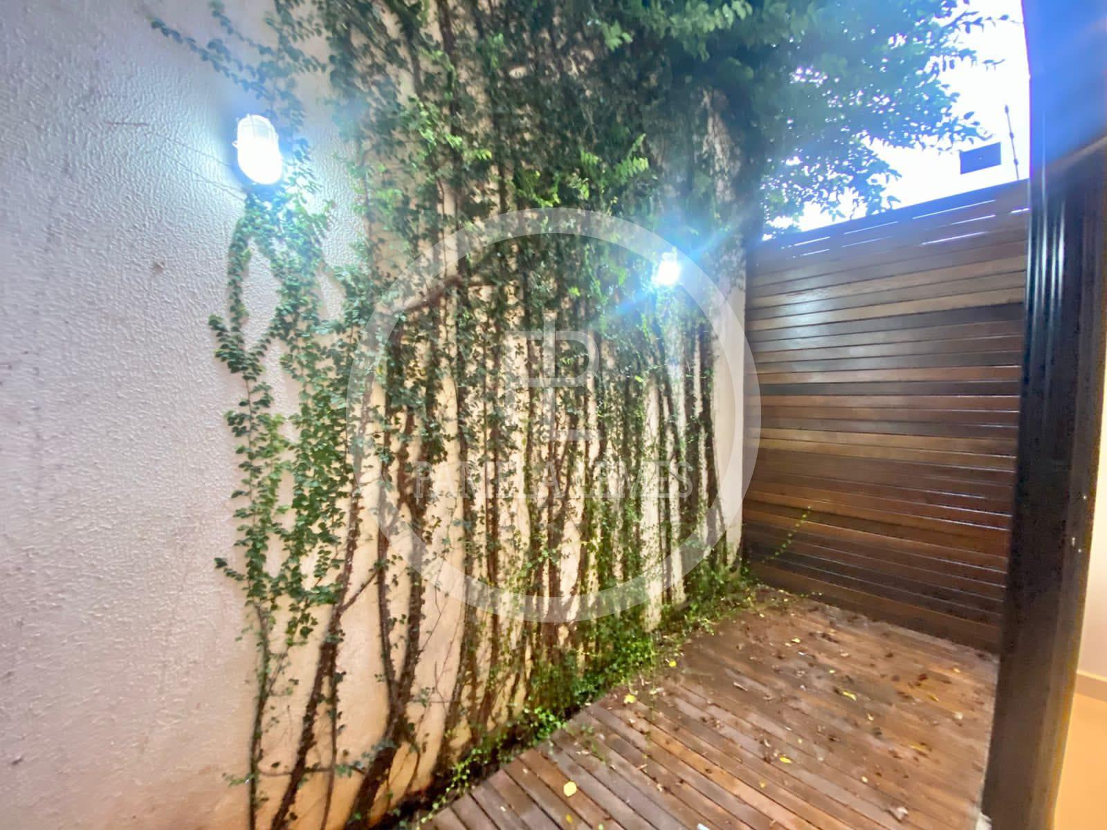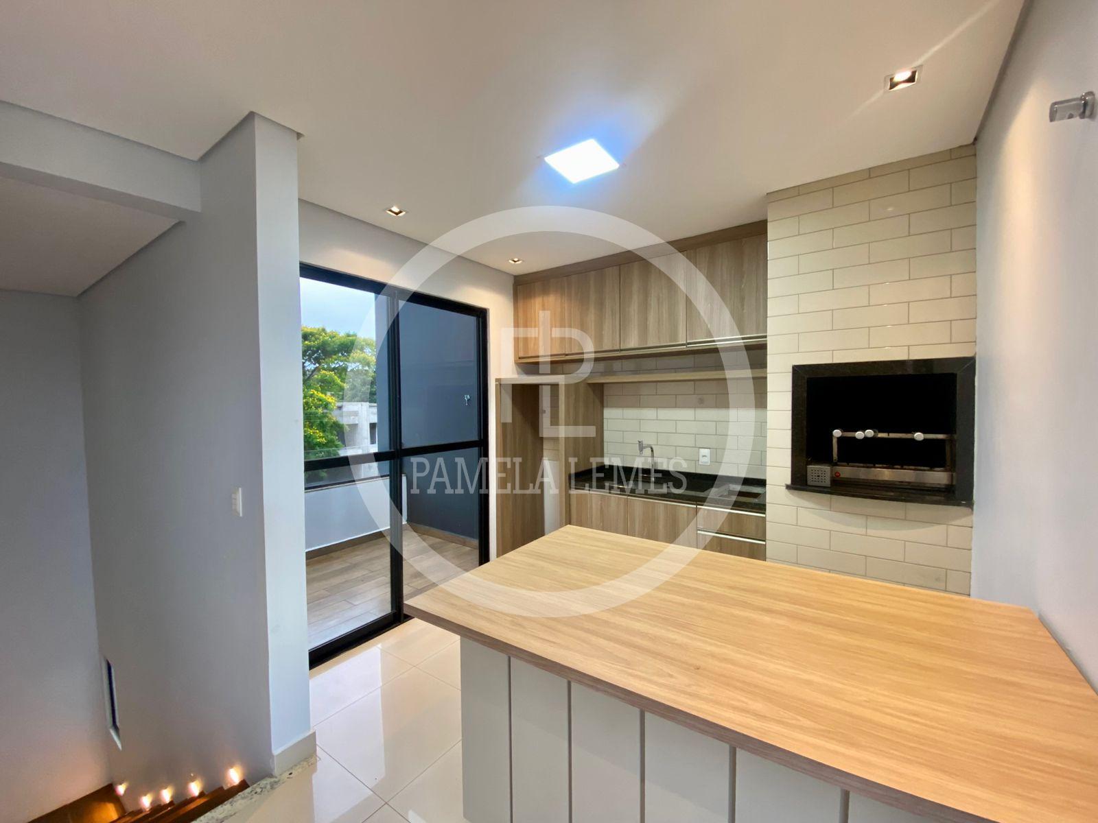 Área gourmet com terraço (cozinha planejada, lavabo, painel ripado)