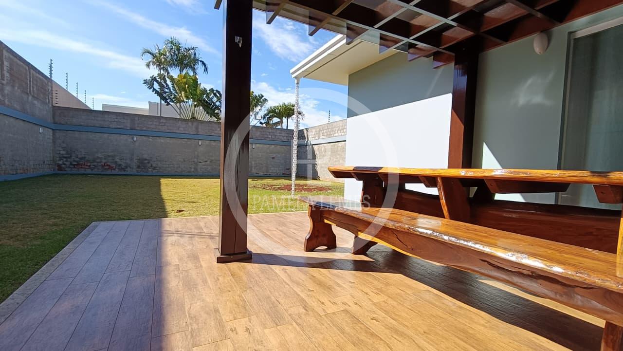 -Ao sair para a área externa, o pergolado em madeira de primeira exibe um toque de moda, enquanto a mesa com bancos de madeira maciça cria o cenário perfeito para desfrutar de refeições ou momentos de lazer ao ar livre, rodeado por ampla sobra de terreno, que oferece possibilidades para personalizar e aproveitar da maneira que desejar.
